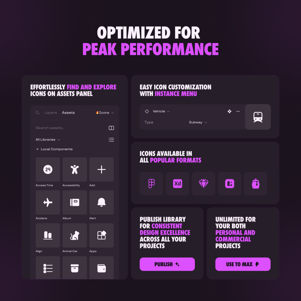 - 7 Formats (Figma, Sketch, Adobe XD, Lunacy, Pixso ,IconJar, and .SVG).